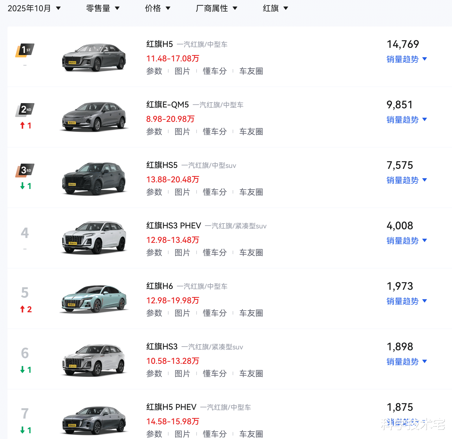 从销量上来看,红旗目前的主力车型要么是H5、HS5这种纯燃油车,要么是E-QM5这种纯电车型,PHEV车型例如HS3 PHEV、HS7 PHEV的销量都不算很好;对于这个问题,小宅认为不难理解——在十几万元这个汽车市场,红旗的PHEV车型定价其实相对较高,市场竞争力不足,所以红旗的PHEV车型想要成功,在定价上需要做一些调整。