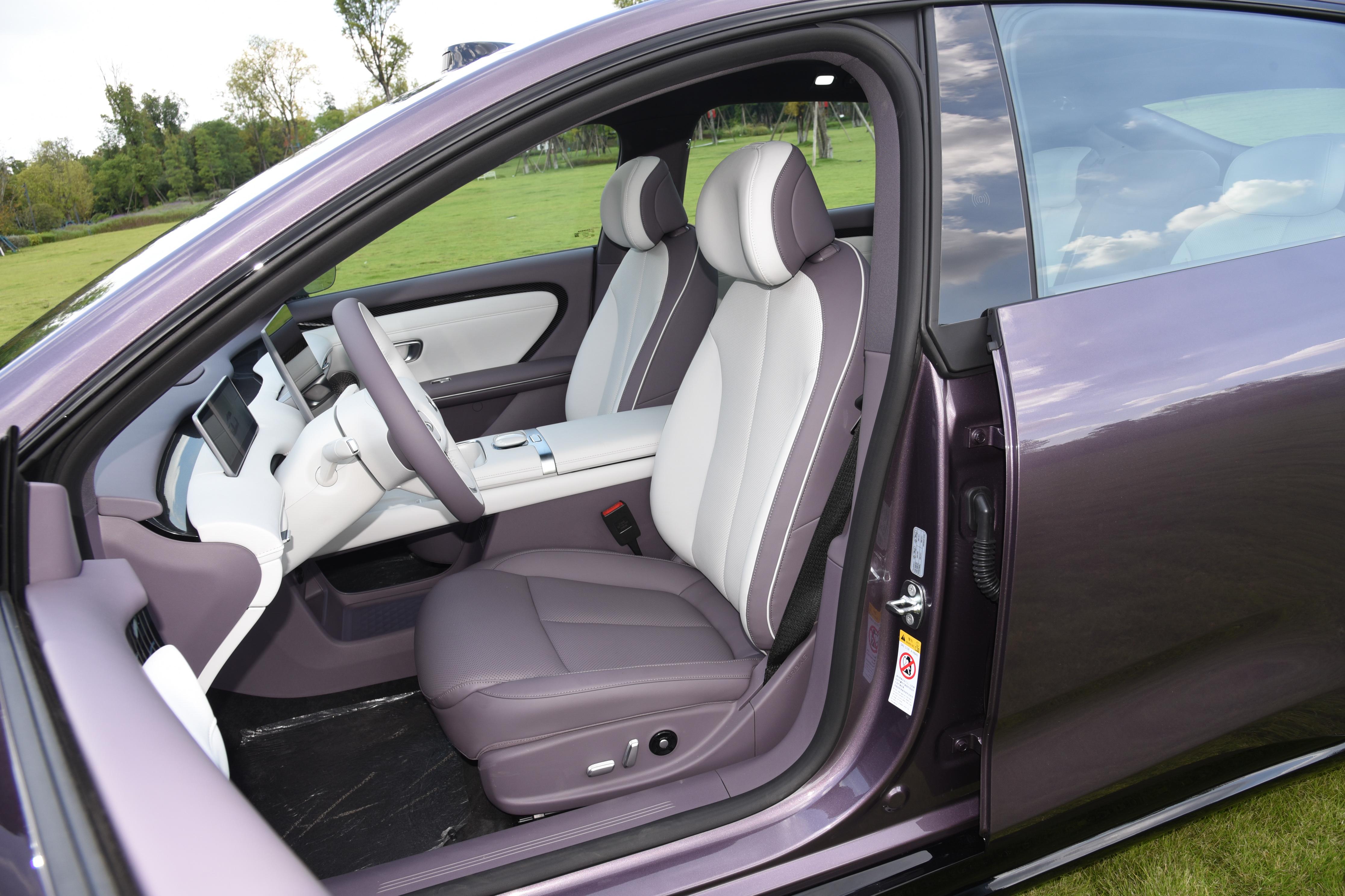 车身侧面,轿跑比例协调,车长4885mm,轴距2922mm,短前悬、长后悬,姿态低趴,运动感十足。低风阻设计也很厉害,有无框车门、隐藏式门把手、无边框后视镜、隐藏式水切槽,不仅降低了风阻,还能减少雨水附着。外后视镜是流线型水滴造型,集成了转向灯和侧方摄像头。双段式立体腰线,前段挺直有力量感,后段上扬,和轮拱凹型面搭配,光影交错,质感满满。轮辋有18英寸和19英寸可选,轮胎尺寸是245/45 R19。