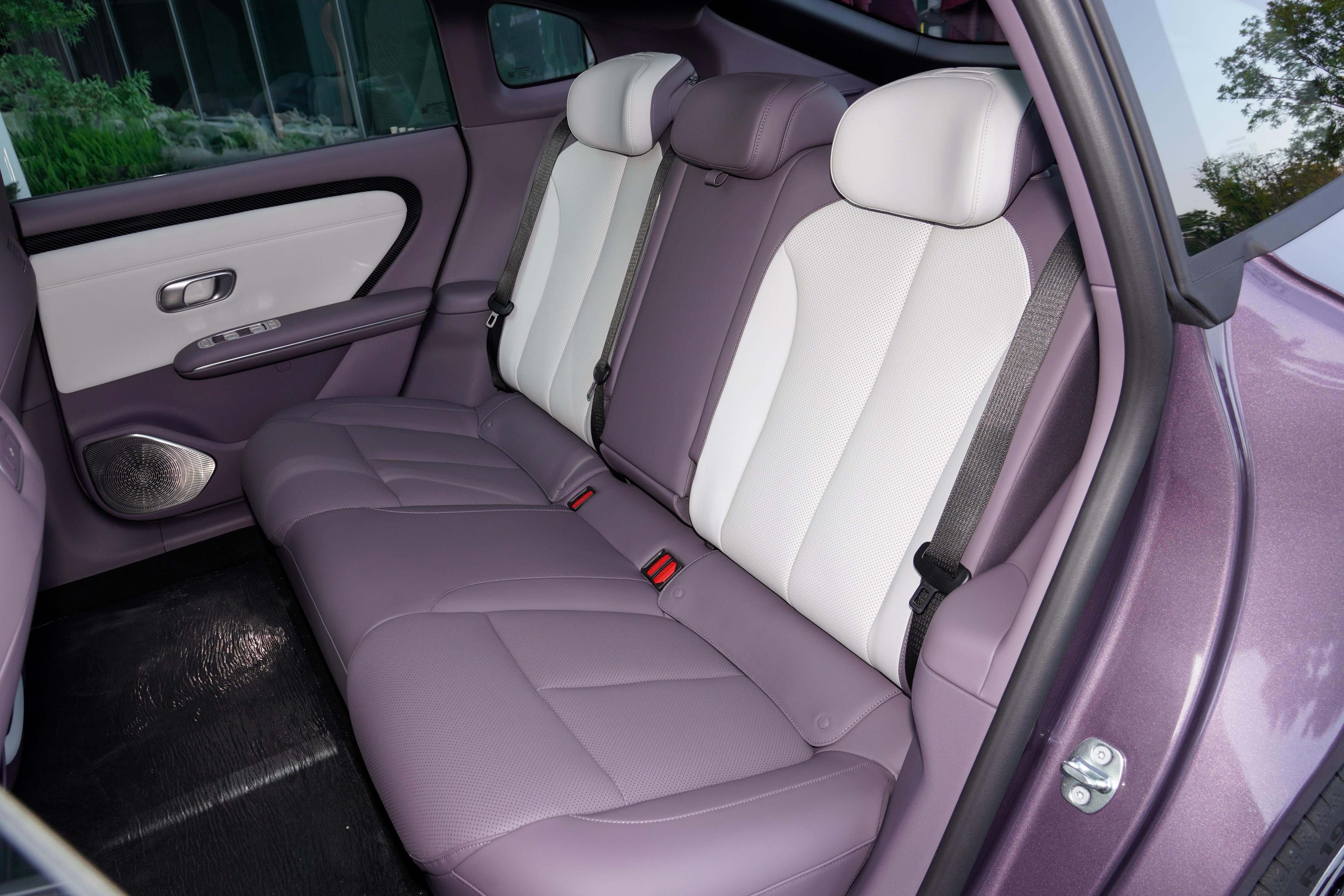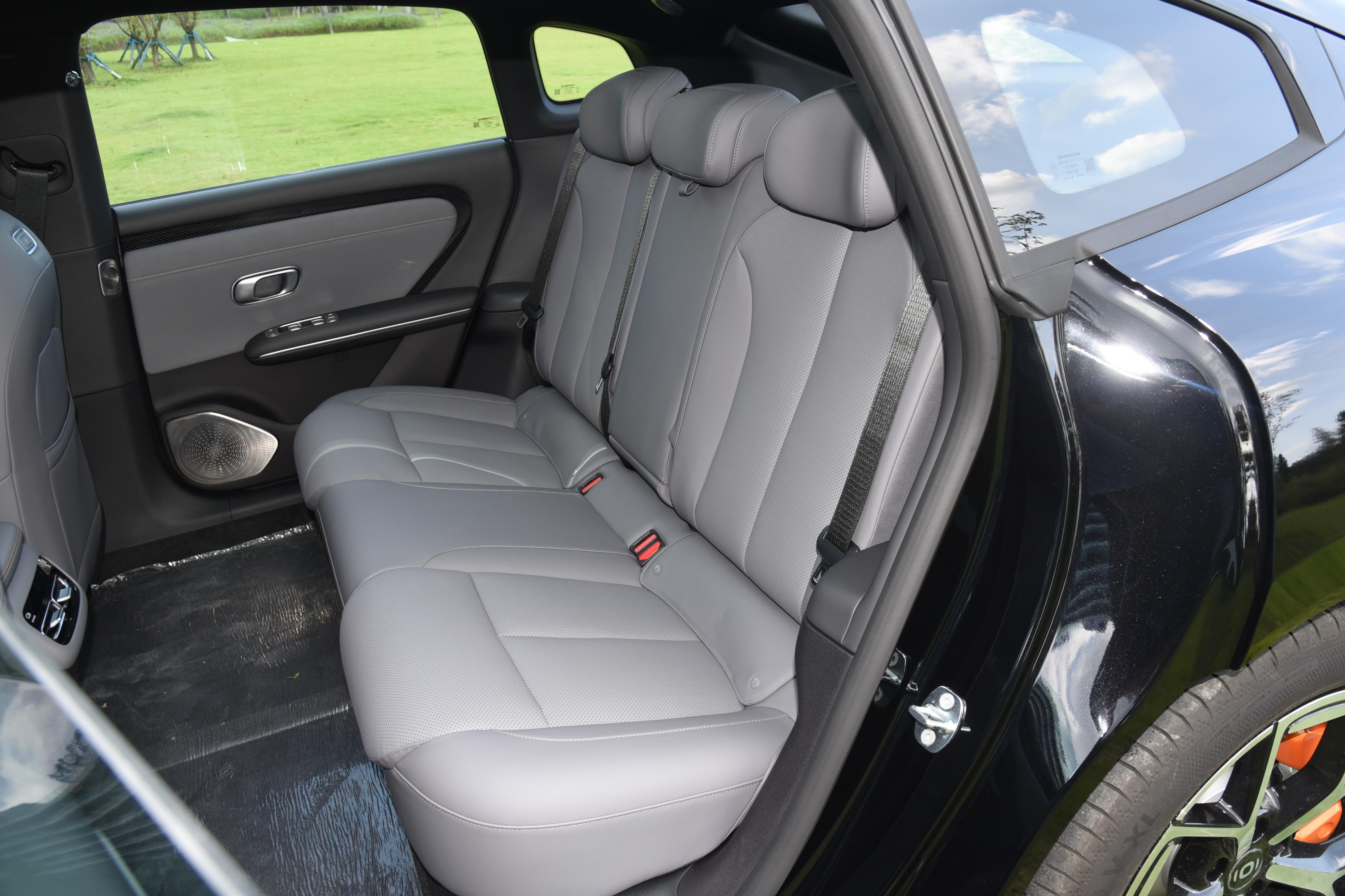 再看后排,朋友坐到后排,腿部大概有两拳多的距离,头部也有一拳左右的富余。后排地板中央凸起不明显,对坐在中间的乘客可太友好了。要是身高175cm的乘客坐后排,腿部和前排座椅之间会有两个拳头左右的距离。而且第二排座椅靠背还支持调节(选装),还有加热、通风、记忆功能,能调到145°,还有28点马尔代夫电动按摩椅模式,长途开车再也不怕累。