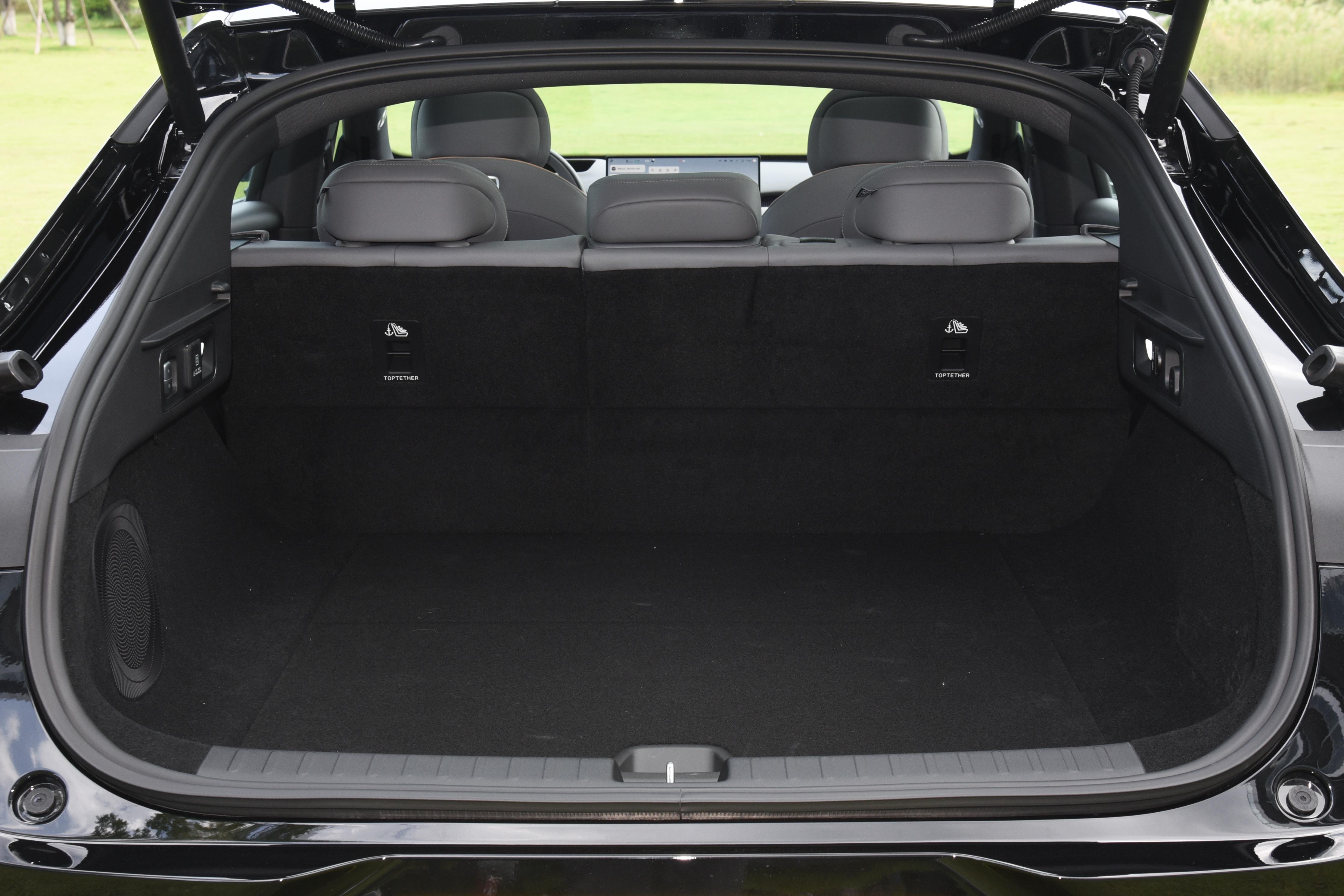 全车有38处收纳区域,车门有雨伞槽,中央扶手箱还是分层的,B柱还有隐藏式挂钩,手套箱、门板储物箱啥的也都有,后排还有可调节杯架,前后排都标配扶手。前后备箱总容积有764升,前备箱108升,后备箱常规有656升。要是把后排座椅按4:6比例放倒,容积能拓展到1770升,搬大件物品轻轻松松,一车放下爸爸的露营装备、妈妈的炊具好物、长辈的钓鱼竿、孩子的心爱玩具等,全家出行不必再做收纳选择题。甚至还能铺上充气垫,秒变“露营大床房”。